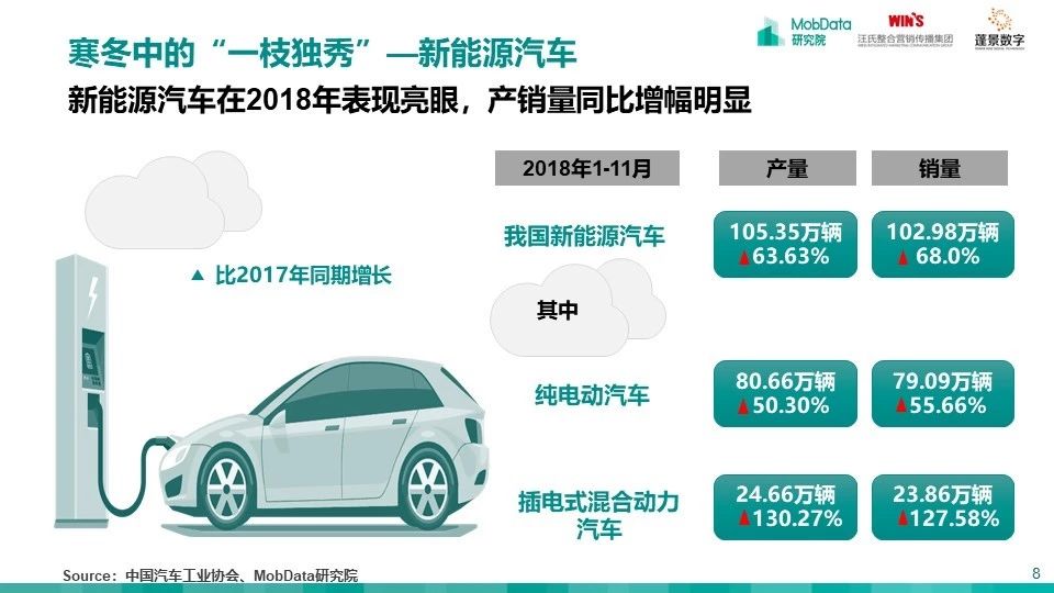 3.新能源市场成为寒冬中的“一枝独秀”。新能源汽车在2018年表现亮眼,同比环比都有不同程度的增长。