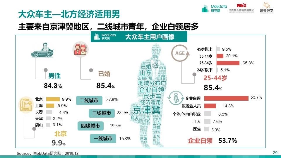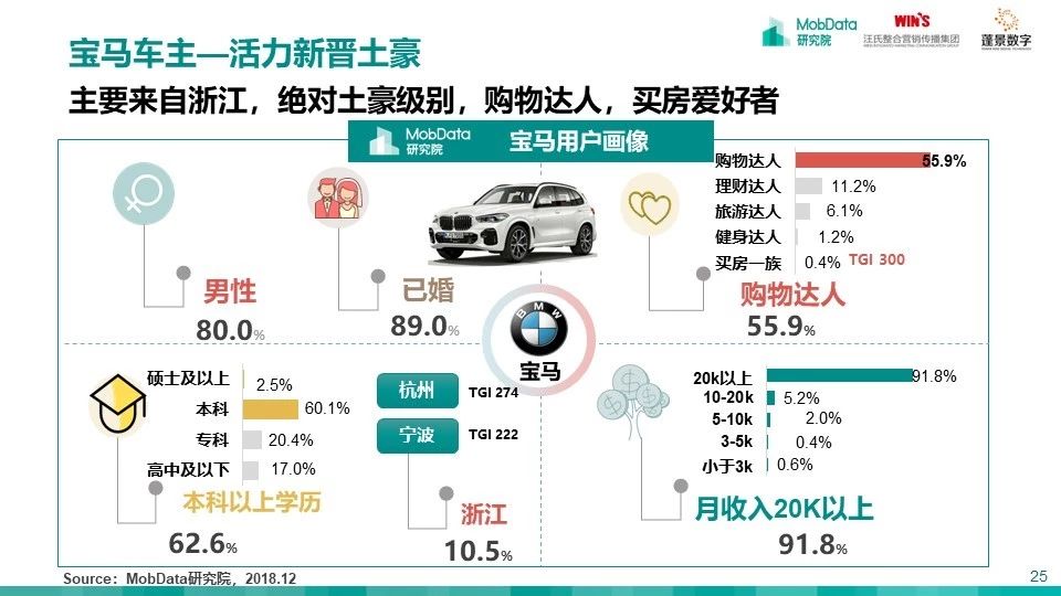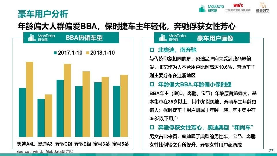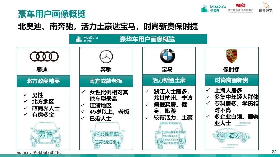 4.豪车受关注,不同豪车车主特征明显。北奥迪、南奔驰,活力土豪选宝马,时尚新贵保时捷。