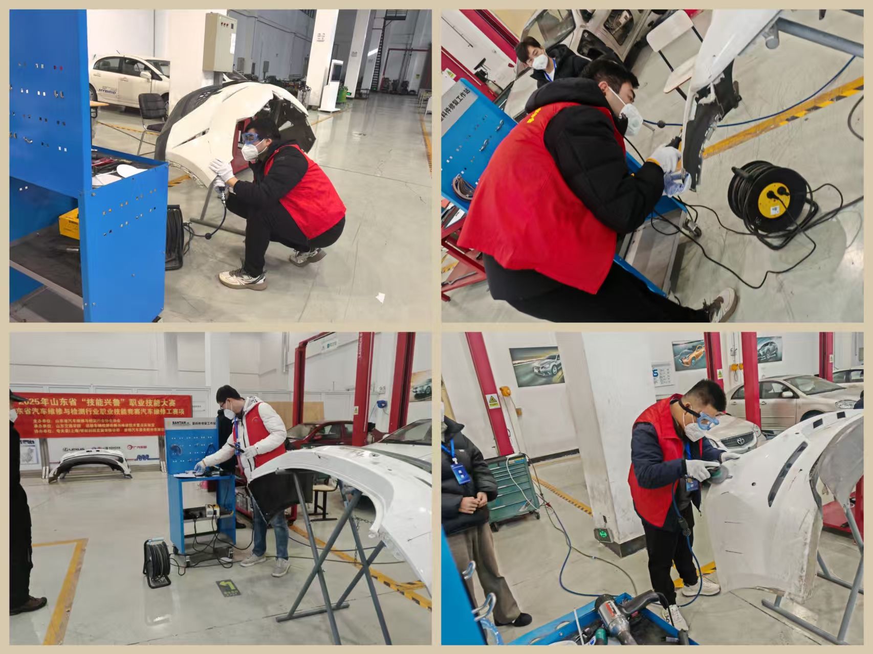 本次竞赛为省级二类竞赛 ,由理论基础、装配仿真及实操能力三个模块组成,吸引了来自全省各地的80余名选手参赛。寒场上选手戴上面罩,以钣金工具为刀枪,用传统与创新相融合的造物工艺,将匠心精神与钣金技艺相融合,紧张有序地进行着比赛规定的修理工作,态度认真、技术娴熟地处理着维修过程中遇到的种种障碍,比赛现场气氛热烈。