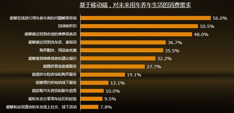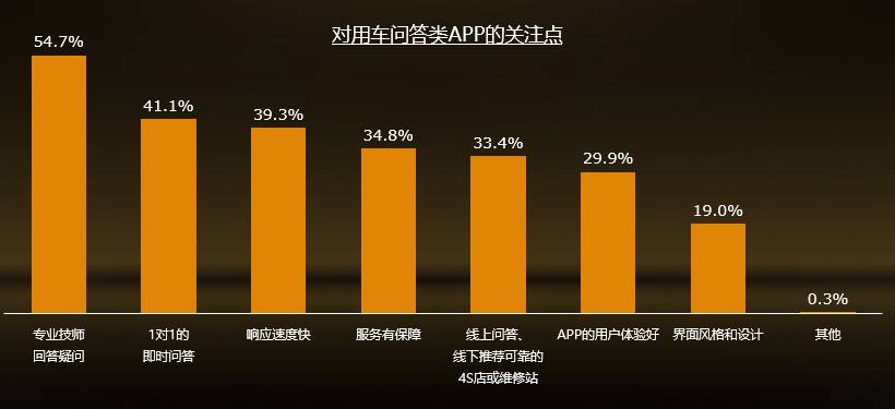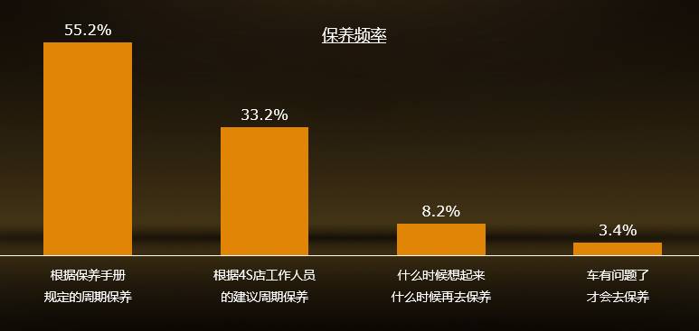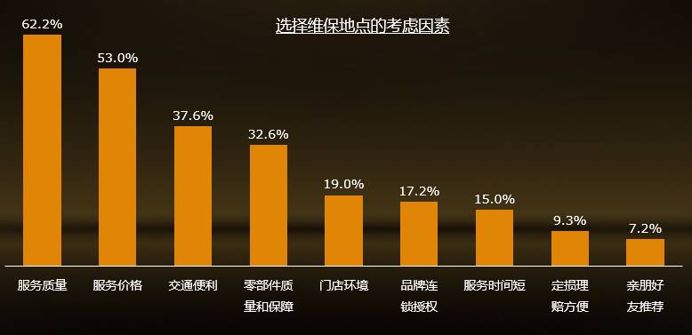 车主对于服务的根本诉求,还是服务的质量,包括专业程度、软硬件保障、流程与规范等,其次是对服务收费的关注度,是否收费合理很重要;新一代车主的消费习惯更趋于理性、互联网化及人性化。