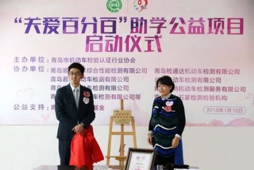 18日上午,由青岛市机动车检验认证行业协会发起的“关爱百分百”助学公益项目启动仪式在青岛检通达机动车检测站举行。青岛市机动车检验认证行业协会现场捐赠10万元进入“关爱百分百”助学公益项目,后期,青岛各机动车检验机构预计每年将产生50余万元善款用于初高中生学校设立奖学金和助学金、留守儿童教育助学。
