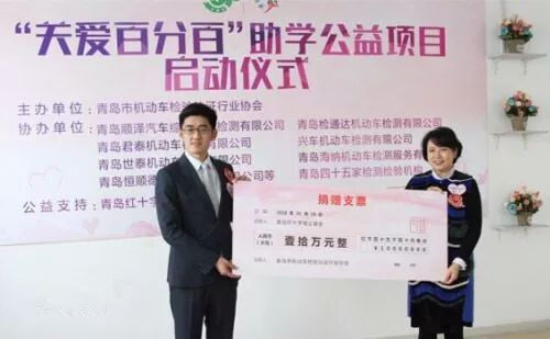 参与“关爱百分百”助学公益项目发起的各检验机构承诺,今后企业每检测一辆车将捐助一份爱心,作为“关爱百分百”的助学善款,行业协会将定期收集并以各机动车检验机构名义捐赠给青岛市红十字微尘基金,费用将全部用于初高中生学校设立奖学金和助学金、留守儿童教育助学等,并且主办方还将组织会员单位走进贫困山区定期进行爱心实践活动,引领行业正能量。通过各机动车检验机构的爱心捐款,预计每年将产生50余万元善款,凝聚公益力量,传递公益精神,让留守儿童及贫困学子得到关爱,学习上取得进步,心理上健康,行为上端正,成为一个独立,自强,自信的人。